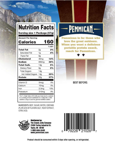 Pemmican® is proud to launch our NEW! Clean Label Premium Sweet Hot Beef Jerky. Don’t let this Sweet Heat flavor fool you, our Sweet Hot Beef Jerky starts with a mild and rich blend of sweet and smoky; before you know it you’ll experience the final touch of intense bold heat! Pemmican® offers a Good Source of Protein with a daily serving of 10g Protein, and contains No Artificial Ingredients, Flavors or Colors.